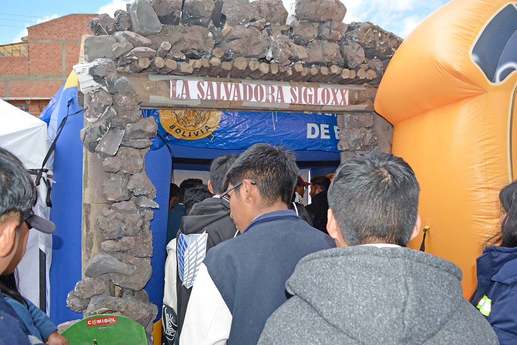 El stand de la COMIBOL, representado por una bocamina de la mina Salvadora de Siglo XX, la mina que hizo el hombre más rico del mundo a Simón Patiño, se convirtió en un concurrido punto de referencia al exhibir una pequeña muestra de las piezas del patrimonio que resguarda como fotografías, libros, revistas, periódicos y piezas museísticas que narran el origen y desarrollo de la minería en el país.